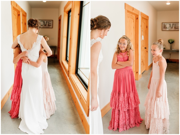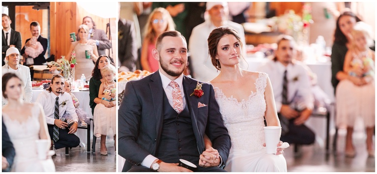 Oh, the day was absolutely beautiful. Abigail got ready with her mom and Brent with his dad. There was no bridal party in sight. Instead, they opted for their siblings to walk the aisle before them. Abigail wore part of her mothers wedding dress. Their wedding date had special significance in Abigails life. Brent and Abigail shared a good amount of time together before their ceremony, just the two of them. The look in Brent’s eyes when he first took in the sight of Abigail. The relaxation that overtook Abigail when, finally, she was in his arms again. An exchange of a surprise gift. A first look with family members. The great crowd that stood during the ceremony, expressing their support. The auction of the first piece of cake. The prayers and the sweet words from sisters and brothers who have cheered these two on from the beginning. It was a place full of love. These are people full of love.