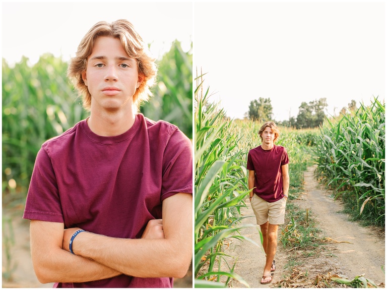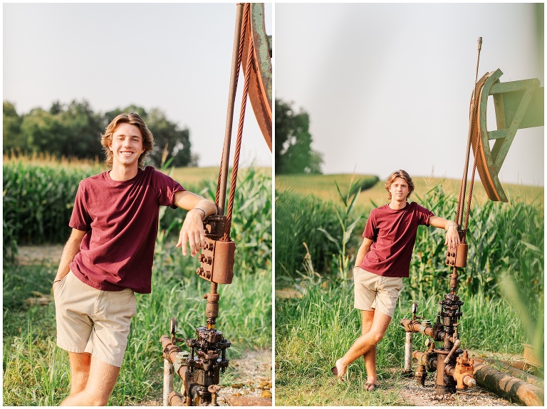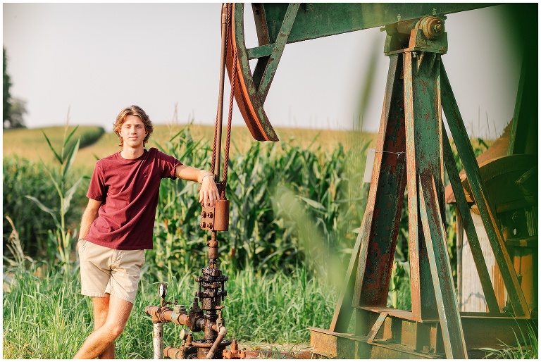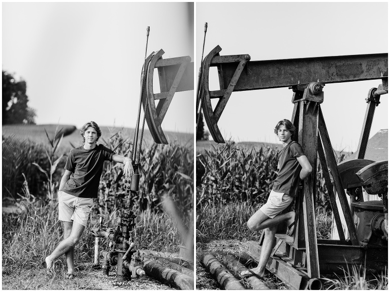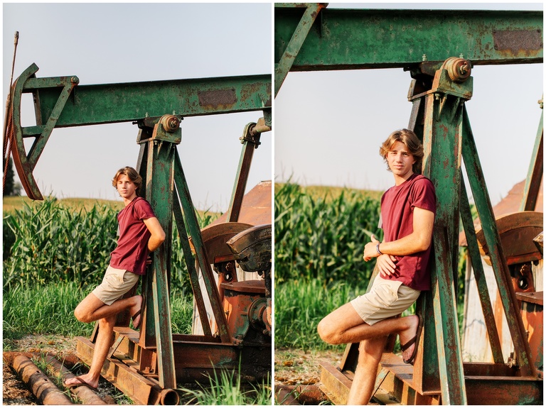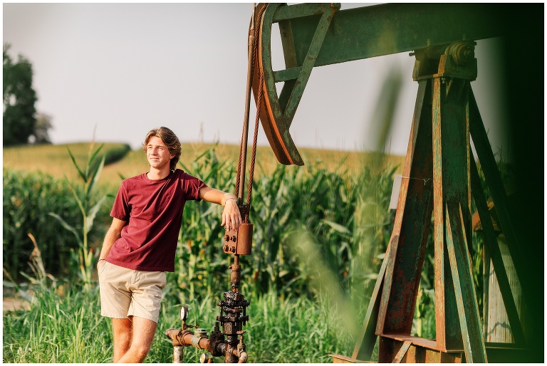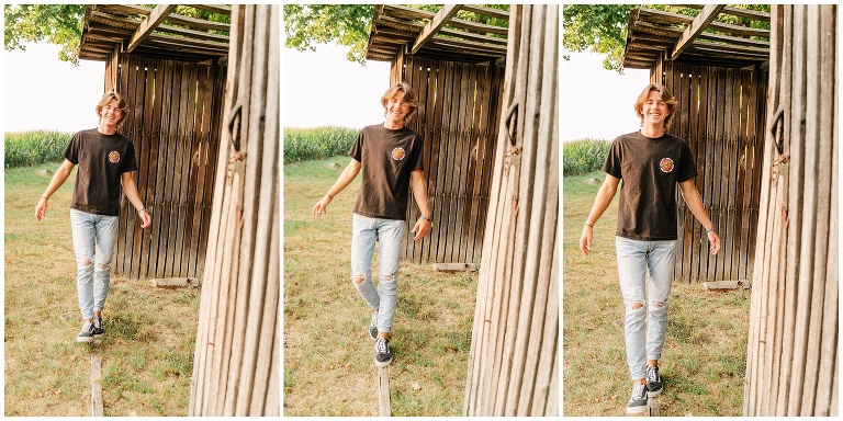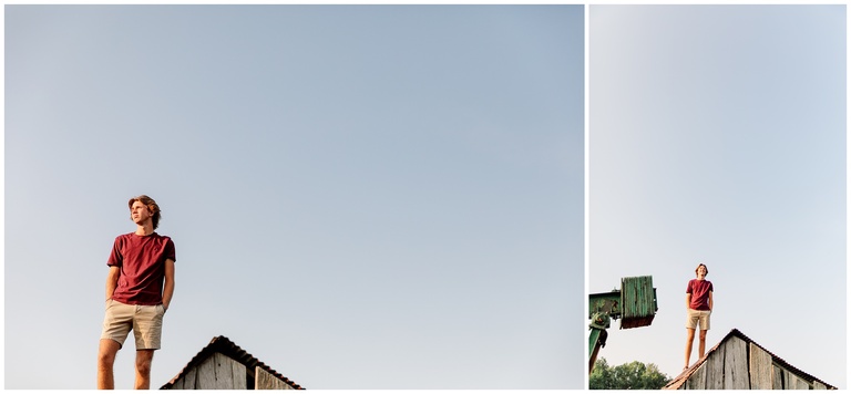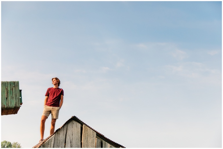Brookston is a golfer–quite a talented golfer, I might add. He is focused, hard working, fun and adventurous. (See, rooftop pictures.) After we met up at the golf course, we drove to the property owned by his family and the place where he most likes to hang. Brookston led the shoot and I simply followed. When he climbed on a roof, I held my breath and said a silent prayer that no injuries would follow. When I was told to climb into his jeep and hold on through the bumpy terrain and corn fields, I flashed back to my own high school days. Should a job really be this fun? Yes, yes it should.