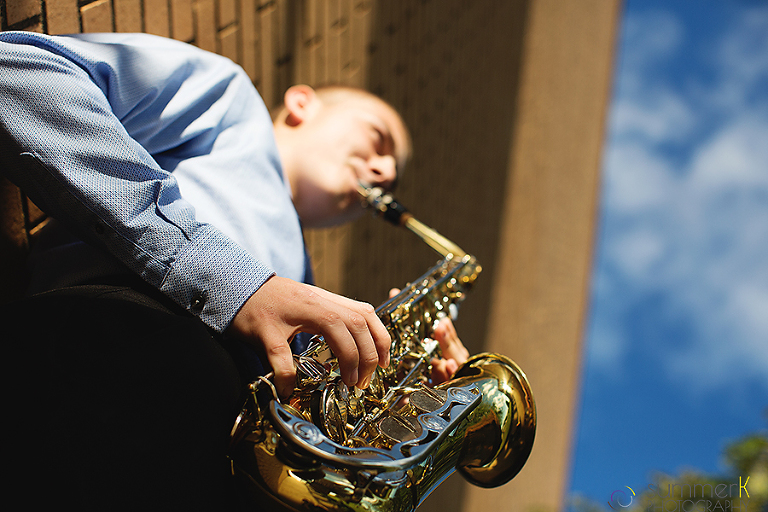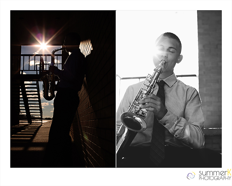 He plays Sax.  And he plays baseball.  Capturing these were important.