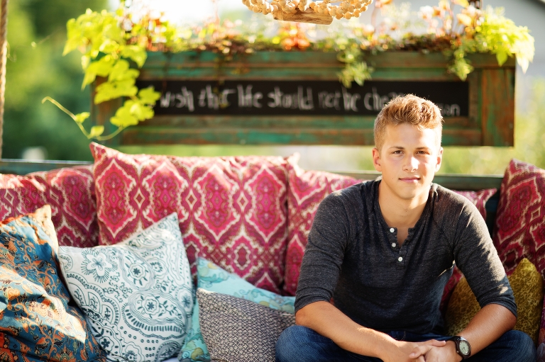I was so happy when Timothy invited me to capture his senior pictures at home. The place where his story began. The place where he continues to write his story. The place where, after he leaves for college, he will come home to. Timothy allowed me to meet him exactly where he is. We hung out in his kitchen where he brewed tea with the mint he grew himself. We chilled on his back patio which truly is a little slice of Heaven on Earth. He told me about the plans he’s contemplating for college and the goals he has for his future while he lounged on the front steps he traipsed up and down more times than anyone could ever keep count. We walked back to the woods where he hung out with his friends and the passage of time was undeniable as the trail where little feet likely endlessly traveled was covered by the natural growth that happens on untouched land. I suspect that trampoline buried back in the woods was traded for the gym, creative endeavors, hanging out in the kitchen, and conversations with friends. While we walked, I heard stories of the days gone by while also hearing stories of the days to come. A straddling of two worlds. A seasons change from what was and what is going to be.