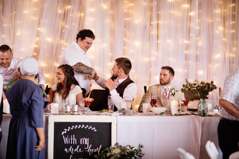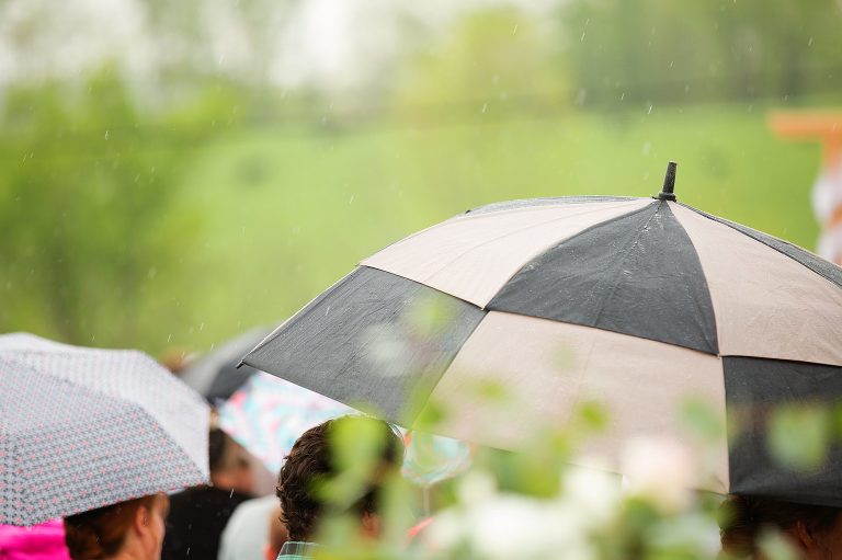 Oh, the stories of a wedding day. Plans made months in advance. Every detail tended to with the utmost care. Tiny things checked and rechecked. And then checked once again. Plans coming together so on a single day there be not a single hitch in the plan could be found. You can plan nearly every moment, can’t you? Every moment, that is, expect when Mother Nature decides to show us that we have very little control. So while the farmers rejoice at the rain, the bride. . . well, the bride takes it all in stride.