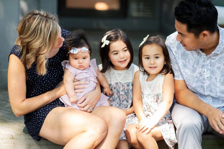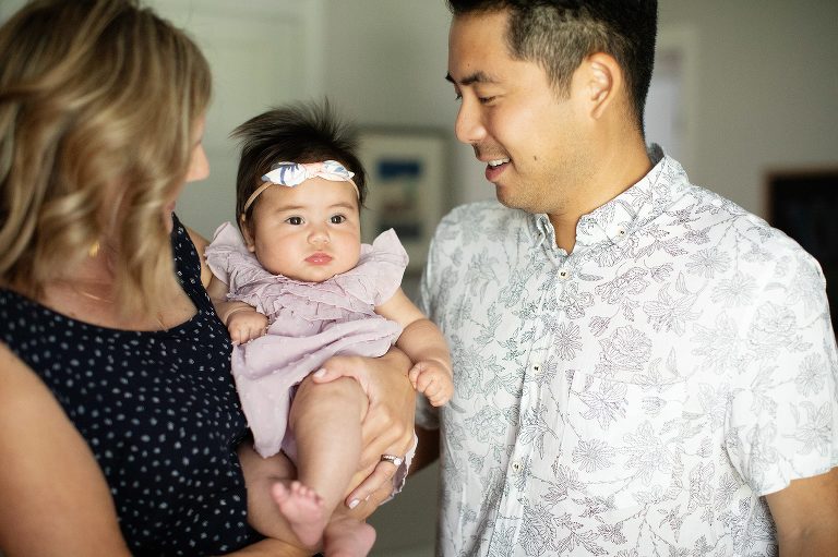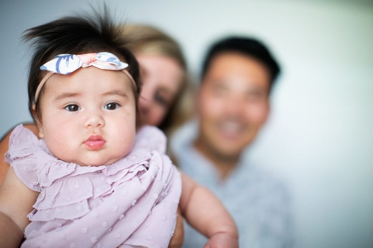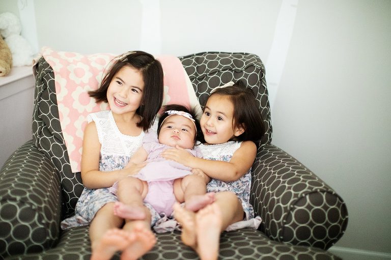 I first met the “M” Family nearly three years ago when they invited into their home to capture their now middle daughters 100th day portrait. At the time, they were a family of four with full hearts, hands, and lives raising their two daughters. When Kristen contacted me this year, I could not have been more thrilled to hear the news of the birth of their third daughter, making what was already so beautiful even more so. It was a joy to be invited into their happy and vibrant home to once again capture the 100 Day portrait of their newest arrival and revisit this beautiful family.
