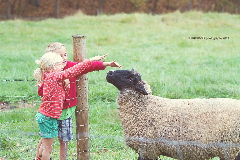 I am so envious – I would love to live in the countryside. It looks so peaceful. I love the two close ups of your daughter – her face is so expressive. Just gorgeous. And the one of your husband with your little one – just so special. And the two older children petting the sheep. Great share – thank you.